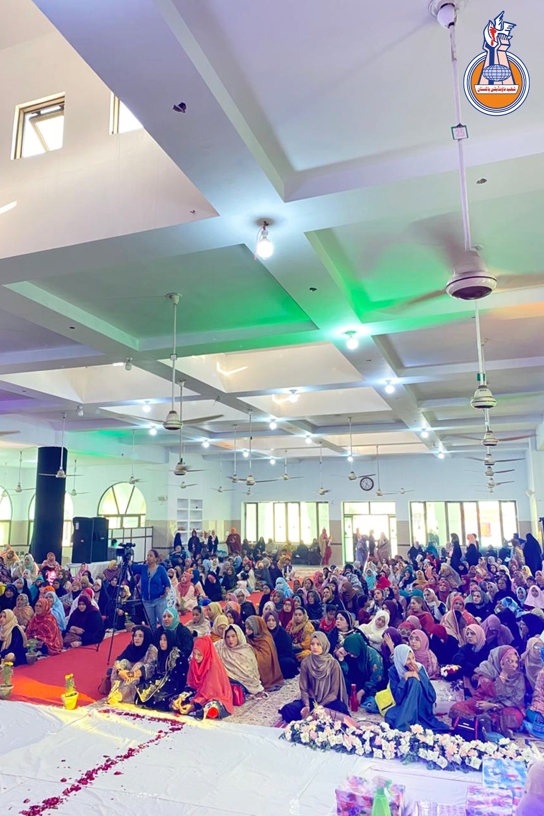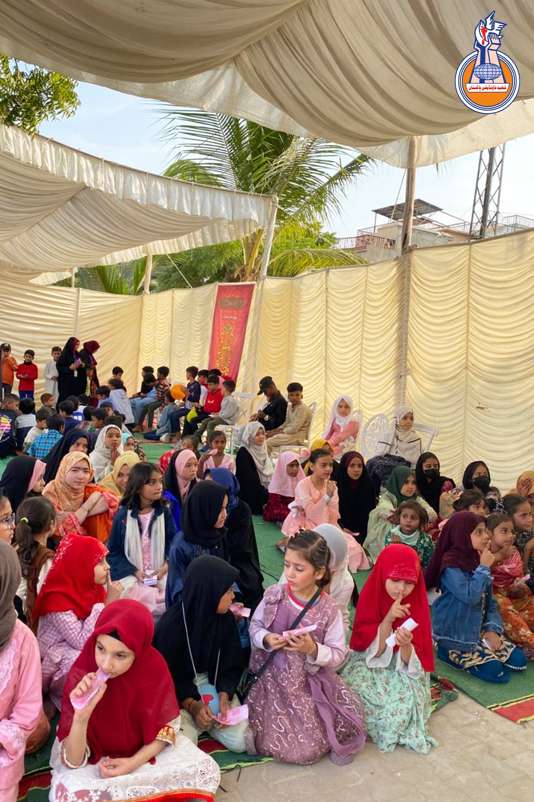 Women and young girls from the families of martyrs belonging to different areas of Karachi participated in the gathering. The program included recitation of the Holy Quran, Hamd, Naat, Manqabat, and a religious address, highlighting the virtues and exemplary character of Hazrat Fatima Zahra (SA).