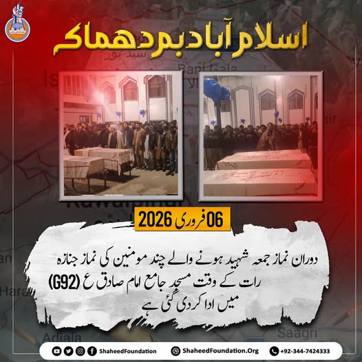 Islamabad: A devastating explosion during Friday prayers on February 6, 2026, at Mosque and Imambargah Khadijatul Kubra (Peace Be Upon Her) in Tarlai Kalan, a suburban area of the federal capital, has left the community in deep mourning. According to initial reports, the explosion was extremely intense, resulting in the martyrdom of several worshippers and leaving many others injured.