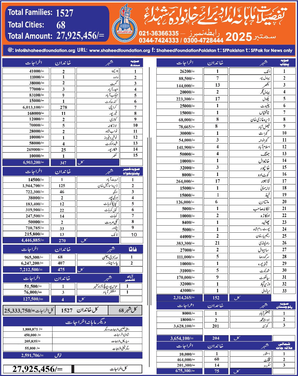 Other Expenses for Families September 2025 Amount: 2,591,706/-